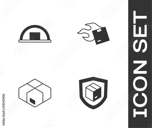 Set Delivery security with shield, Warehouse, Carton cardboard box and icon. Vector