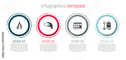 Set Drawing compass, Approximate measurements, Calendar and Scale with suitcase. Business infographic template. Vector