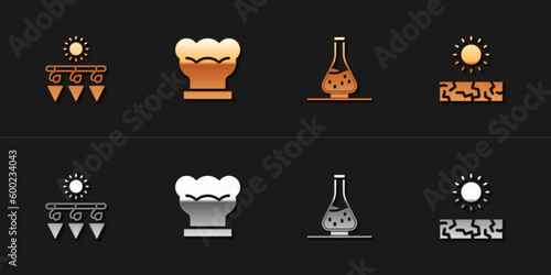 Set Drying grapes, Chef hat, Decanter for wine and Drought icon. Vector