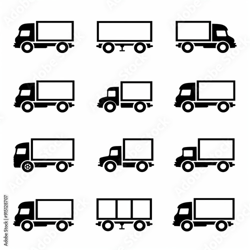 Set flat icon for truck isolated on White background, Ai generated image