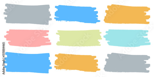 set frame rectangle orange yellow green blue brush stroke. Grunge brush vector hand drawn icon. Repeated irregular strokes with polka dots and a brush. Model trends drawn by hand.