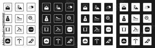 Set Gold nugget, Falling arrow with gold bars, Old money bag, Diamond engagement ring box, Bag of, 24k and mine icon. Vector