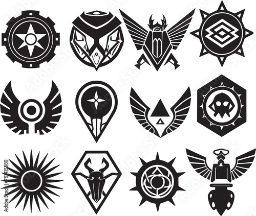 Set Greyscale cyberpunk video game symbol. Hand drawn vector illustration