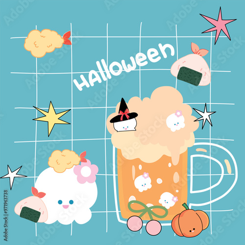 set Halloween, Various types of Halloween ice cream, rice, cake, flower, Halloween vector, happy ghost, autumn