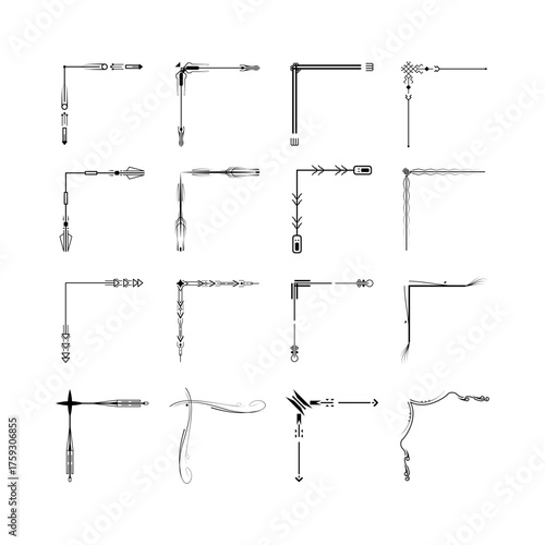 Set Hand Draw Of Corners Different Shapes Flower Decoration Vector Design Doodle Sketch Style For Wedding And Banner