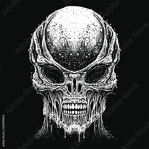 Set Hand drawn Goat Skull Head Dark Art with Different Angel Hatching Outline Style illustration