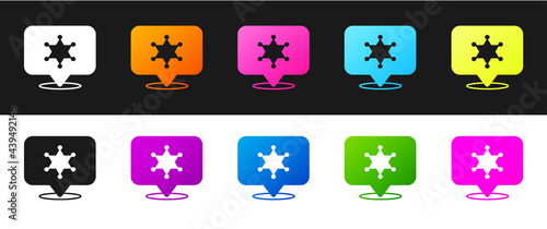 Set Hexagram sheriff icon isolated on black and white background. Police badge icon. Vector