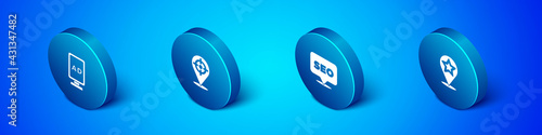 Set Isometric Advertising, SEO optimization, Map pointer with star and Target sport icon. Vector
