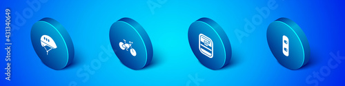 Set Isometric Bicycle helmet, First aid kit, Snowboard and icon. Vector