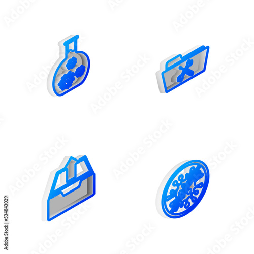 Set Isometric line Folder service, Test tube with virus, Upload inbox and Stop bacteria icon. Vector