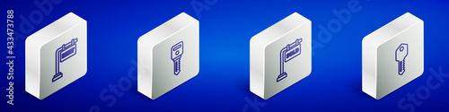 Set Isometric line Hanging sign with Rent, House key, Sold and icon. Vector