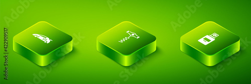 Set Isometric Wine corkscrew, Perfume and Sport racing car icon. Vector