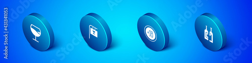 Set Isometric Wine glass, Alcohol 18 plus, Bottles of wine and Street signboard with Bar icon. Vector