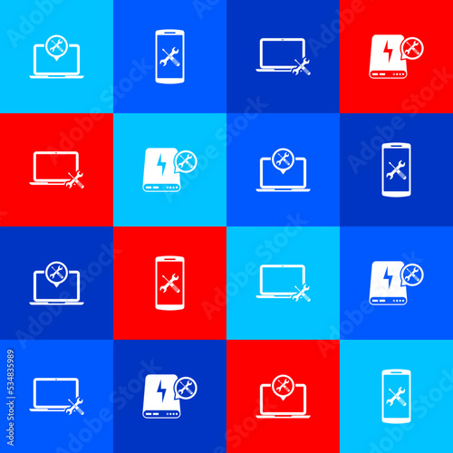 Set Laptop service, Smartphone, and Power bank icon. Vector