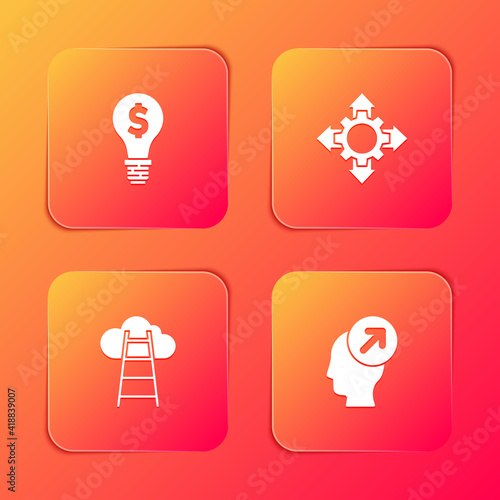 Set Light bulb with dollar, Project team base, Stair finish flag and Head hunting concept icon. Vector.