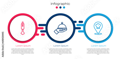 Set line Blender, Covered with tray and Chef hat location. Business infographic template. Vector