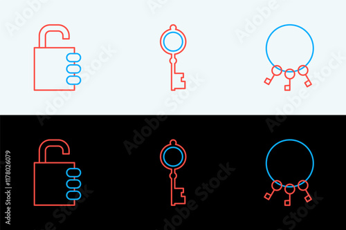 Set line Bunch of keys, Safe combination lock and Old icon. Vector