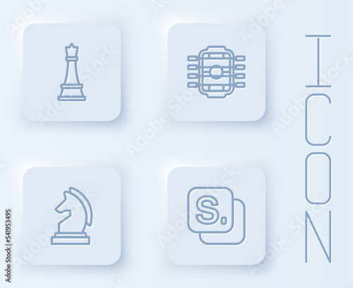 Set line Chess, Table football, and Bingo. White square button. Vector