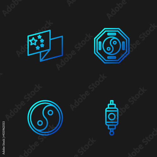Set line Chinese paper lantern, Yin Yang, China flag and . Gradient color icons. Vector