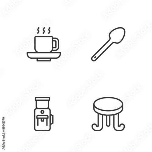 Set line Coffee table, Electric coffee grinder, cup and Teaspoon icon. Vector