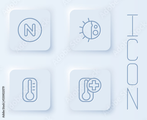 Set line Compass north, Day night cycle, Thermometer and . White square button. Vector