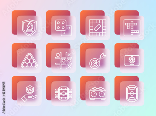 Set line Crossword, Table football, Classic dart board and arrow, Time chess clock, Tic tac toe game, Board, Chess and Game dice icon. Vector