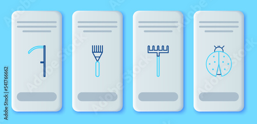 Set line Garden rake, Scythe and Ladybug icon. Vector