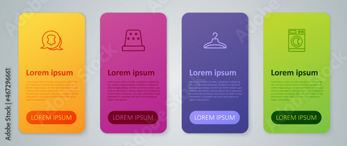 Set line Hanger wardrobe, Washer, Leather and Thimble for sewing. Business infographic template. Vector