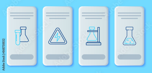 Set line High voltage sign, Test tube flask on stand, chemical and icon. Vector