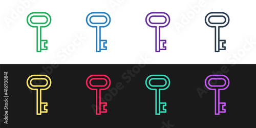 Set line House key icon isolated on black and white background. Vector.