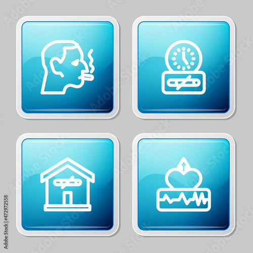 Set line Man smoking a cigarette, No time, at home and Heartbeat increase icon. Vector