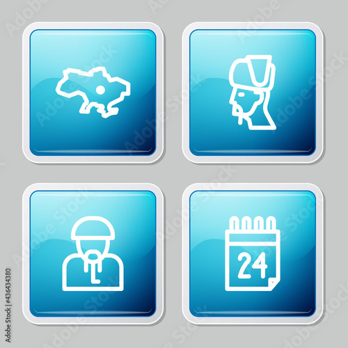 Set line Map of Ukraine, Ukrainian cossack, and Independence day icon. Vector