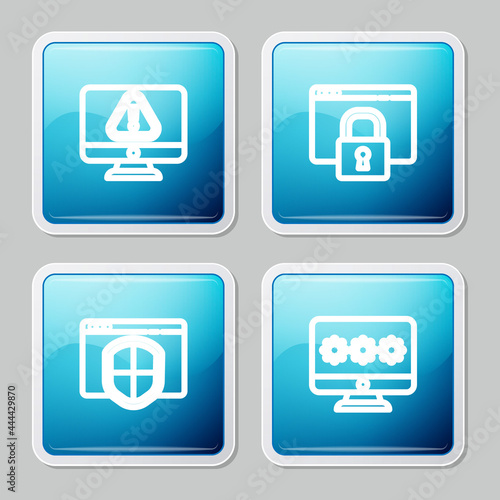 Set line Monitor with exclamation mark, Secure your site HTTPS, SSL, Browser shield and password icon. Vector