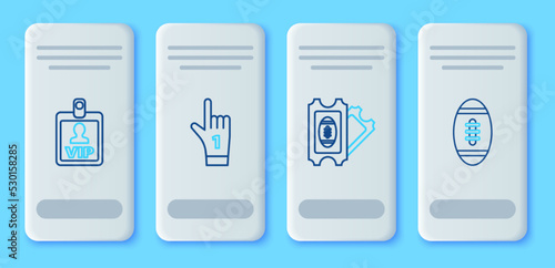 Set line Number 1 one fan hand glove with finger raised, American Football ticket, VIP badge and icon. Vector