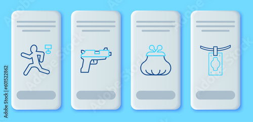 Set line Pistol or gun, Wallet, Murder and Money laundering icon. Vector