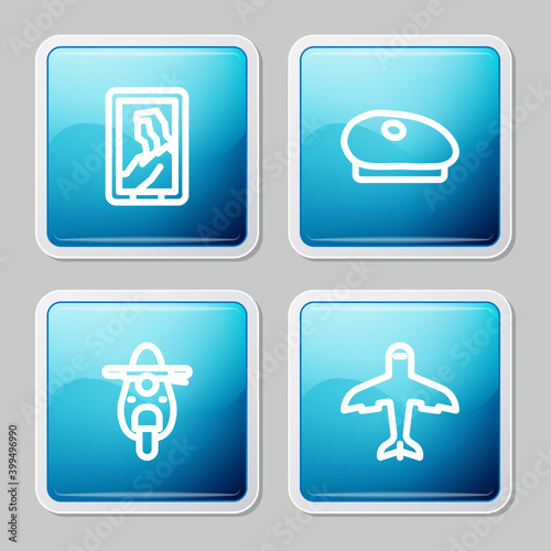 Set line Portrait in museum, French beret, Scooter and Plane icon. Vector.
