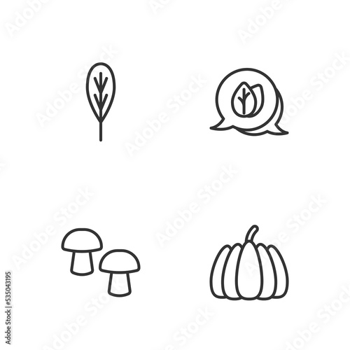 Set line Pumpkin, Mushroom, Leaf and icon. Vector