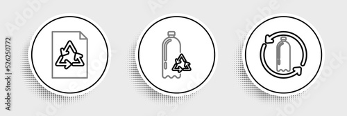 Set line Recycling plastic bottle, Paper with recycle and icon. Vector