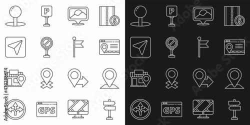 Set line Road traffic sign, Location, Infographic of city map navigation, Stop, Push pin and marker icon. Vector