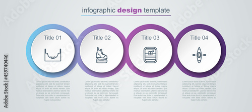 Set line Skate park, Skates, First aid kit and Kayak or canoe. Business infographic template. Vector