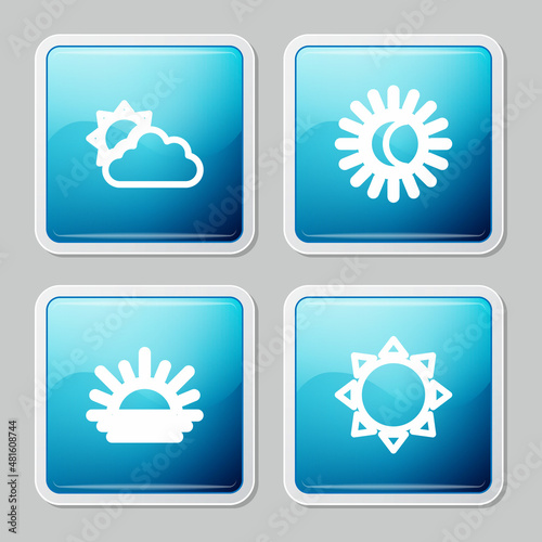 Set line Sun and cloud weather, Eclipse of sun, Sunset and icon. Vector