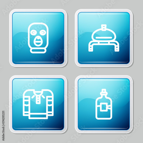 Set line Thief mask, Bread and salt, Embroidered shirt and Bottle of vodka icon. Vector.