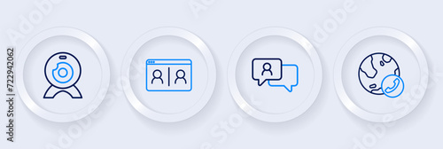 Set line Video chat conference, Speech bubble, and Web camera icon. Vector