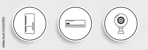 Set line Web camera, Refrigerator and Air conditioner icon. Vector