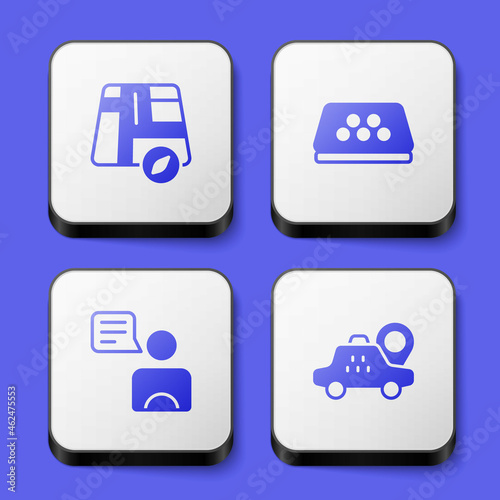 Set Location taxi car, Taxi roof, driver and icon. White square button. Vector