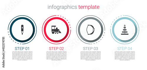 Set Marker pen, Toy train, Bow toy and Pyramid. Business infographic template. Vector