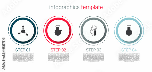 Set Molecule, Test tube and flask, Chemical explosion and . Business infographic template. Vector