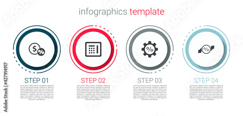Set Money coin with percent, Safe, Gear and Discount tag. Business infographic template. Vector
