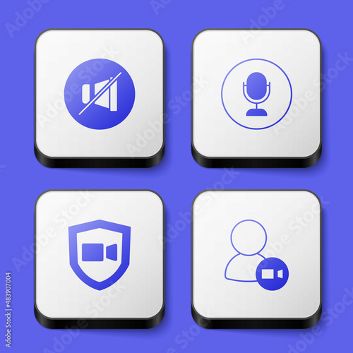 Set Mute microphone, Microphone, Video chat conference and icon. White square button. Vector