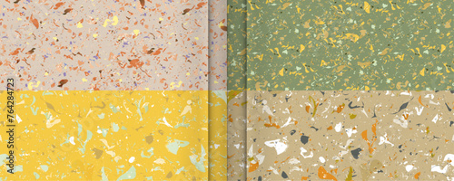 Set new trend color seamless terrazzo patterns. Pattern for ceramics marble natural stone. Vector stock illustration textured shapes in vibrant colors